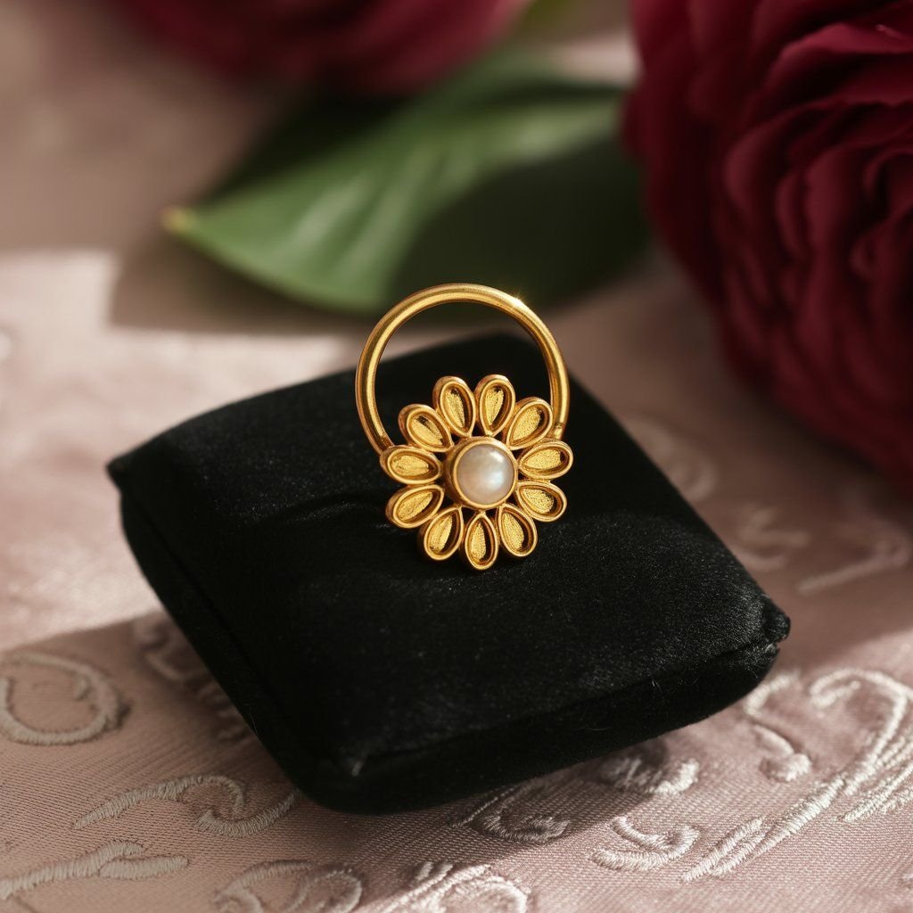 Find the perfect nose pin gold at a trusted gems and jewellery shop near you. We offer simple and stylish pieces for all looks. Explore our latest gold nose pin design for daily wear or special events. From small studs to classic rings, each style is made with care. Our gold nose ring design fits both modern and traditional tastes. Visit a jewellery shop near me or check a gold jewellery shop near me to see our full range. Light, easy to wear, and made to last—find your next gold nose pin with us today.